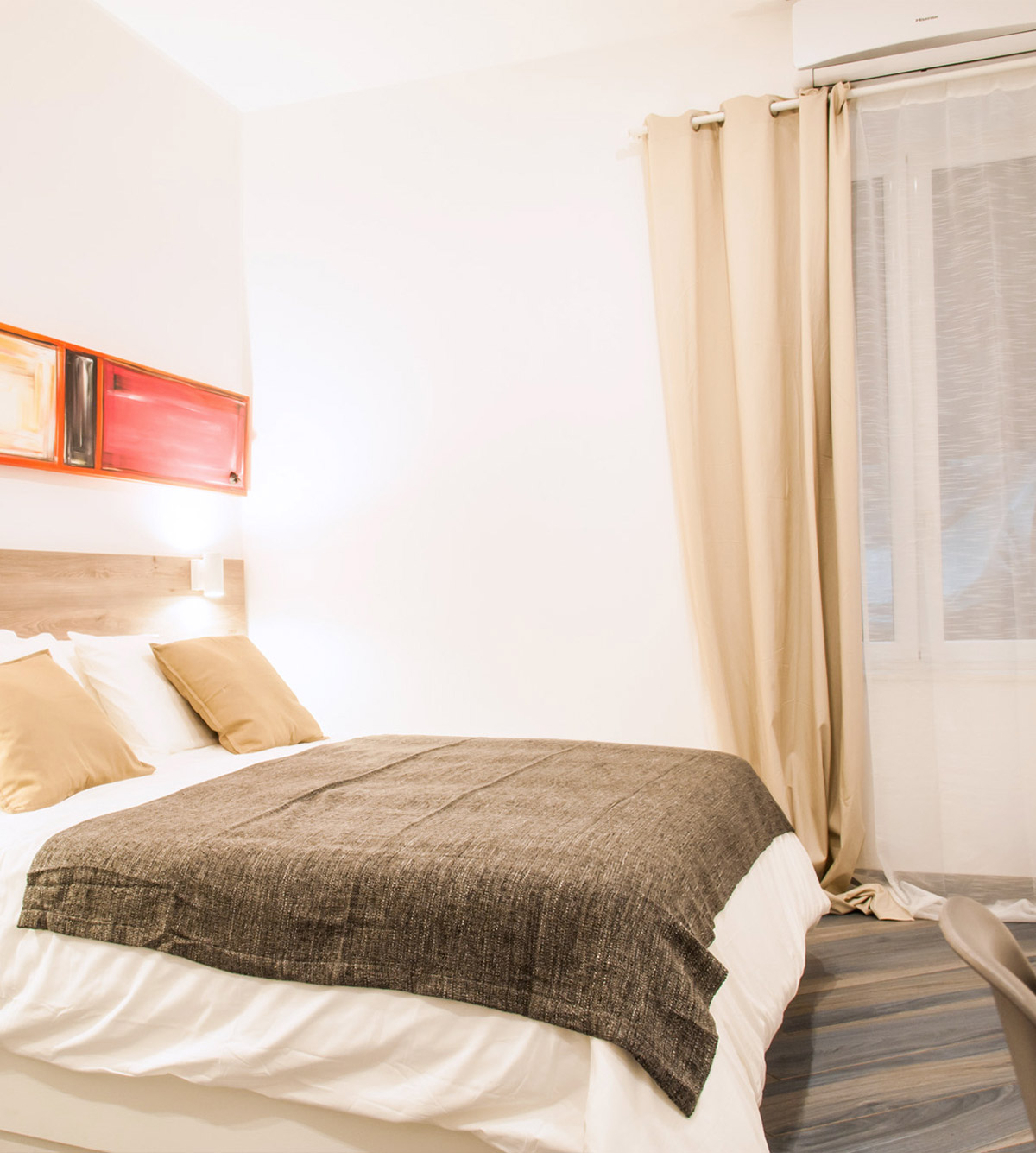 La camera standard, grande 16mq, è dotata di letto Queen size, aria condizionata, scrivania, frigo bar e bagno con doccia